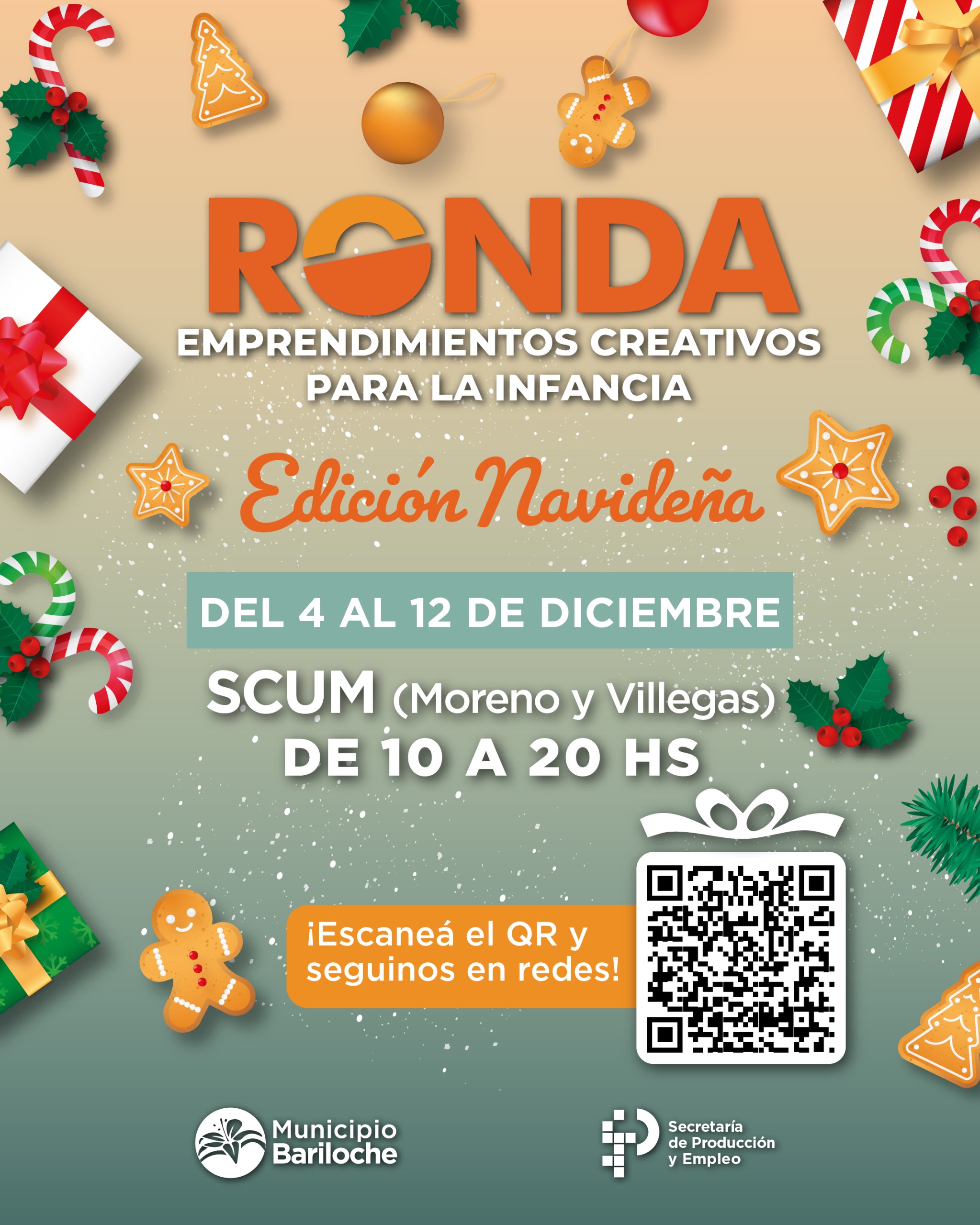 Ronda es un espacio colectivo, que está coordinado por la Secretaría de Producción y Empleo del Municipio de Bariloche, desde el año 2021 ofrece al público local y turista, productos de emprendimientos de Bariloche destinados a las Infancias.