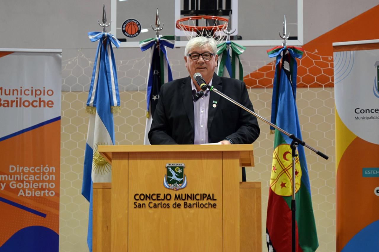 El comienzo de la sesión estuvo a cargo del presidente del Concejo Deliberante de Bariloche, Gerardo Del Río, quien tomó la palabra para agradecer la presencia de concejales, autoridades y vecinos que acompañaron la jornada. En su mensaje de bienvenida, destacó la importancia institucional del encuentro y, tras saludar a los presentes, dio paso al intendente Walter Cortés para el desarrollo de su discurso.