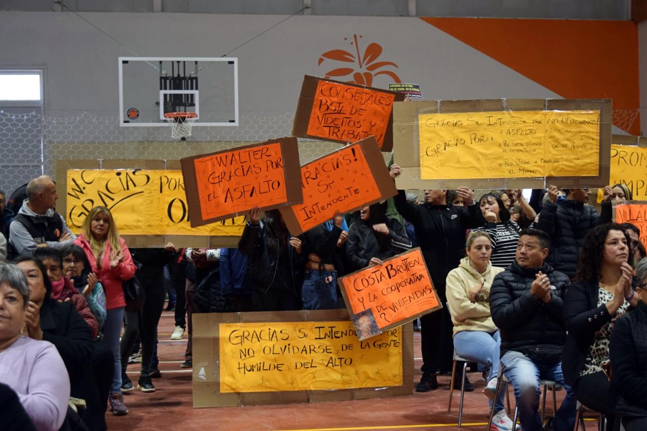 En materia de redes y servicios, el intendente mencionó la obra de gas para Villa Lago Gutiérrez y Reina Mora, con más de 500 familias beneficiadas y un total de 14.235 metros de cañería. También señaló el registro de afirmación para la obra de cloacas en Las Victorias y solicitó al Concejo la declaración de Interés Público correspondiente para avanzar.
