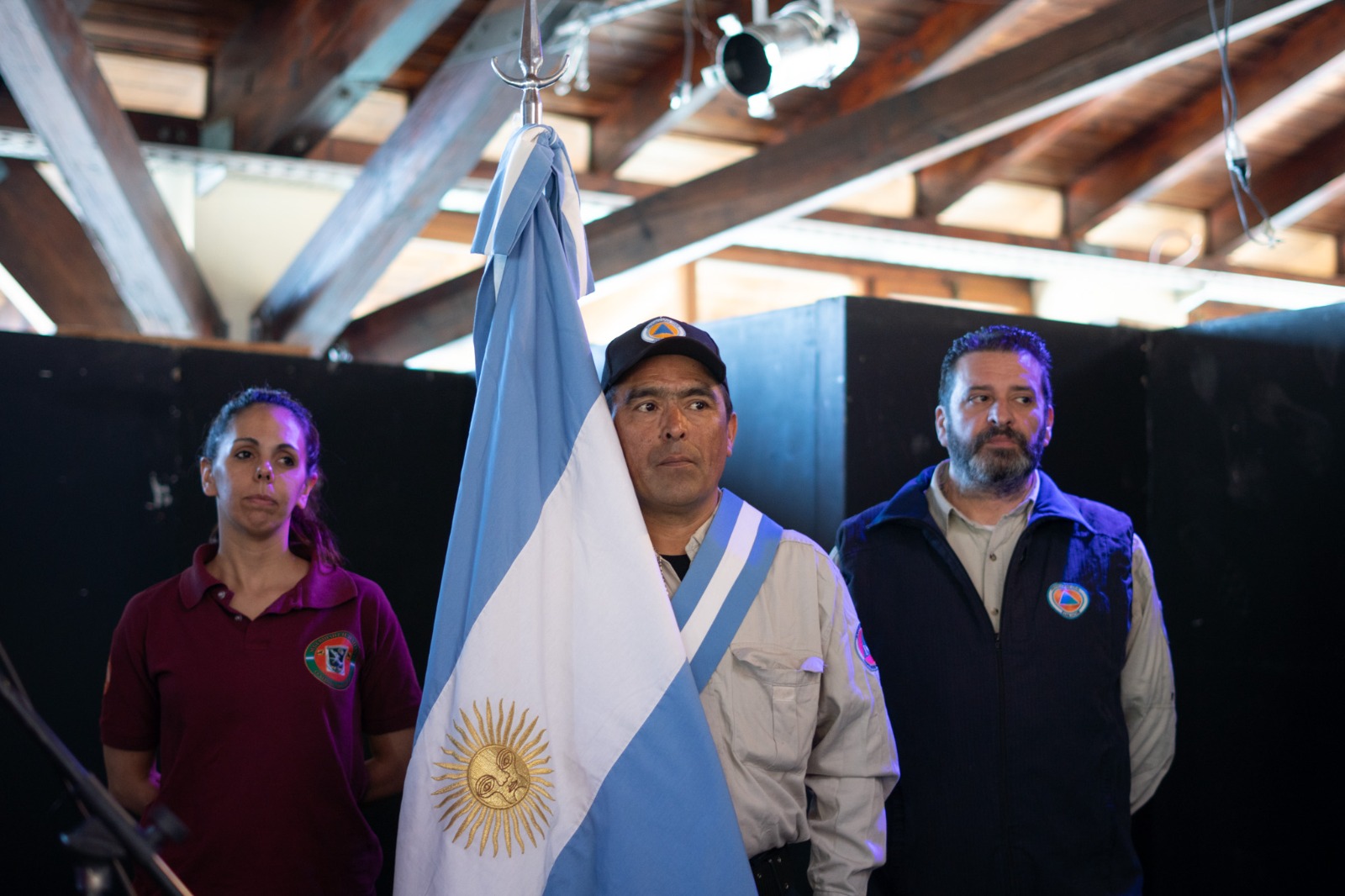 Durante el acto, el secretario de Protección Ciudadana, Carlos Madjinca, dirigió unas palabras a los presentes, destacando el valor de la prevención y el trabajo conjunto de las instituciones. Luego, el intendente Walter Cortés subrayó la importancia de fortalecer la conciencia ciudadana y el compromiso comunitario frente a emergencias.