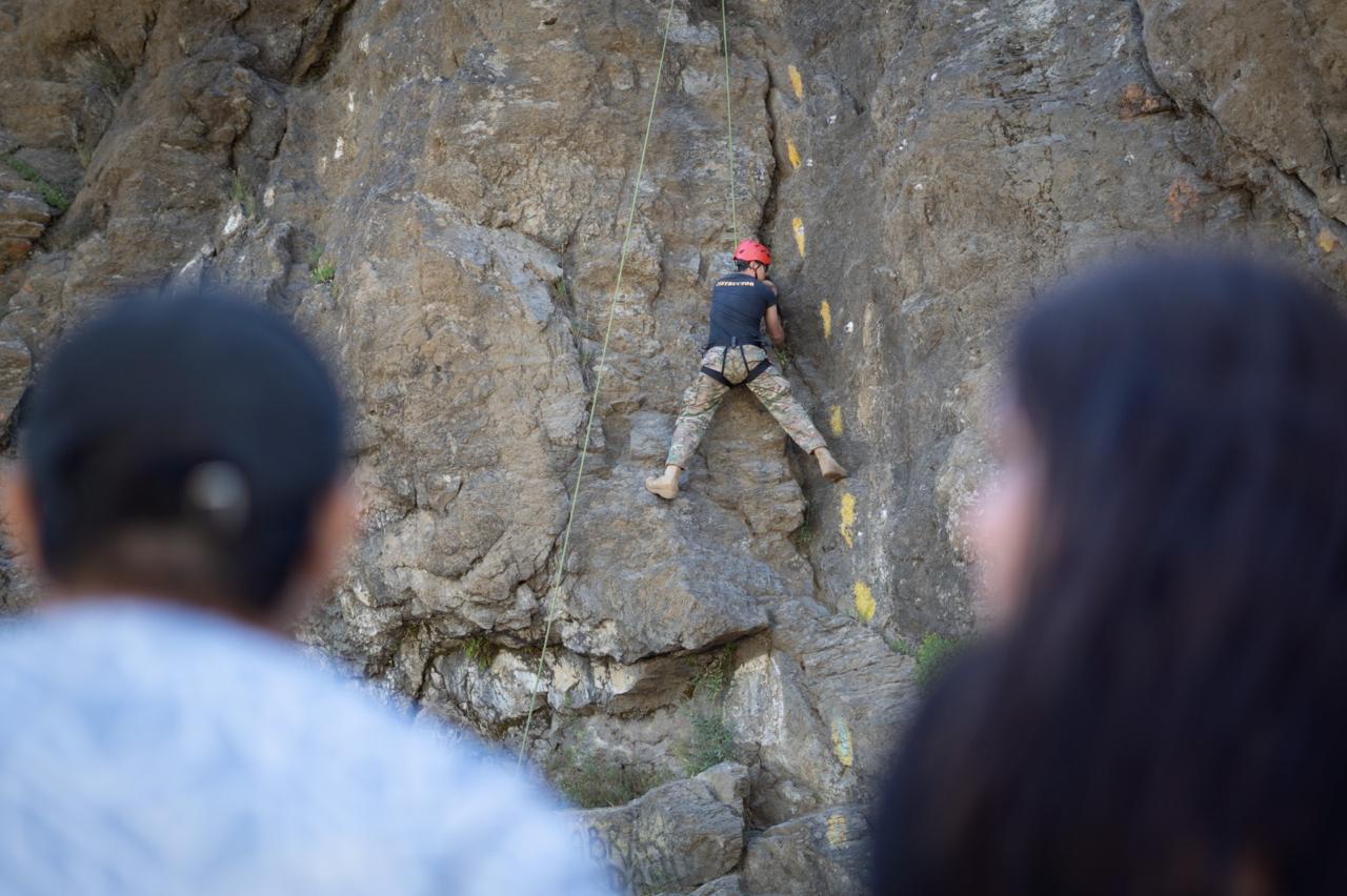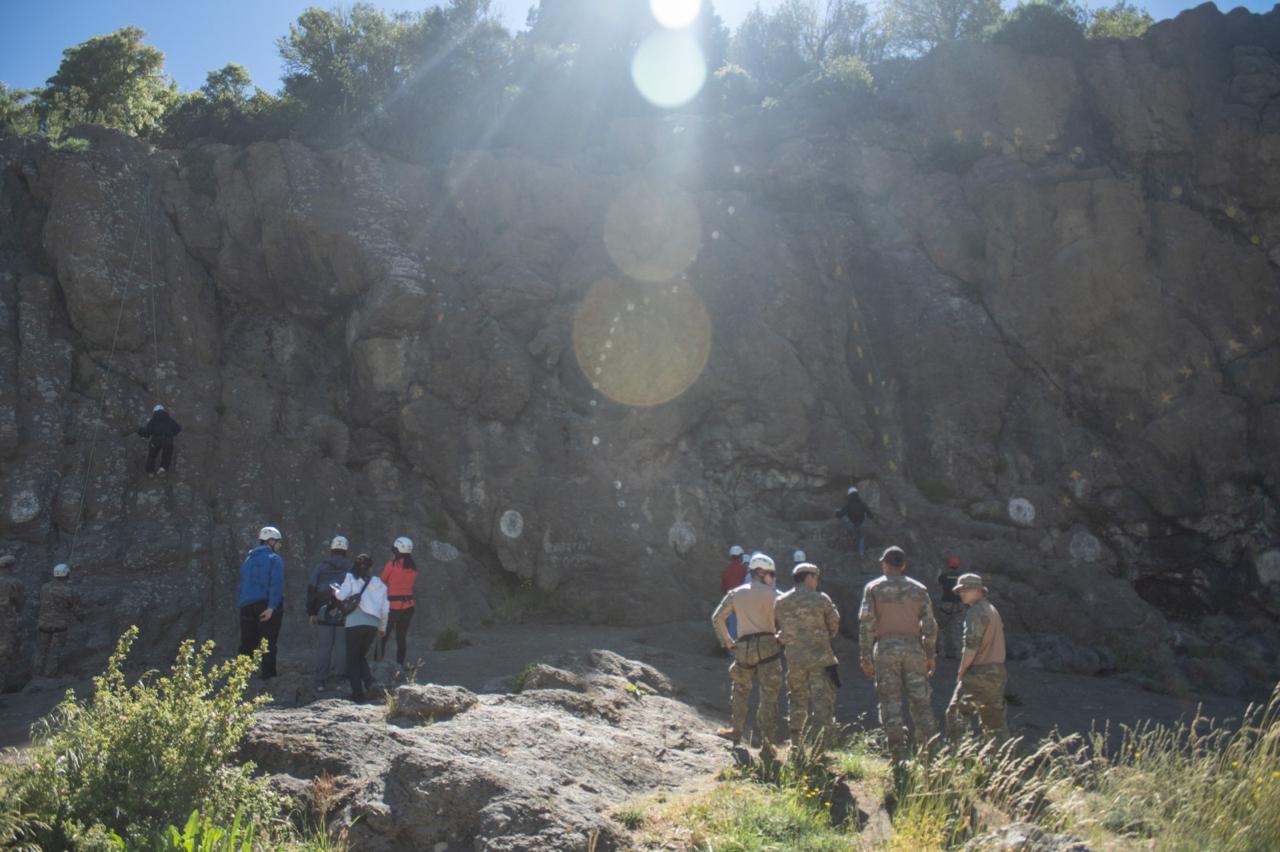Durante la mañana, el grupo participó de una experiencia de escalada en top rope en la palestra de Virgen de las Nieves, acompañados por instructores de la Escuela Militar de Montaña, que aportaron equipamiento, personal y asistencia técnica para garantizar una práctica segura y accesible. Más tarde realizaron una caminata hacia el Paseo de la Usina, un sendero que en el último tiempo recibió importantes mejoras realizadas en conjunto entre la institución militar y la Delegación Cerro Catedral.