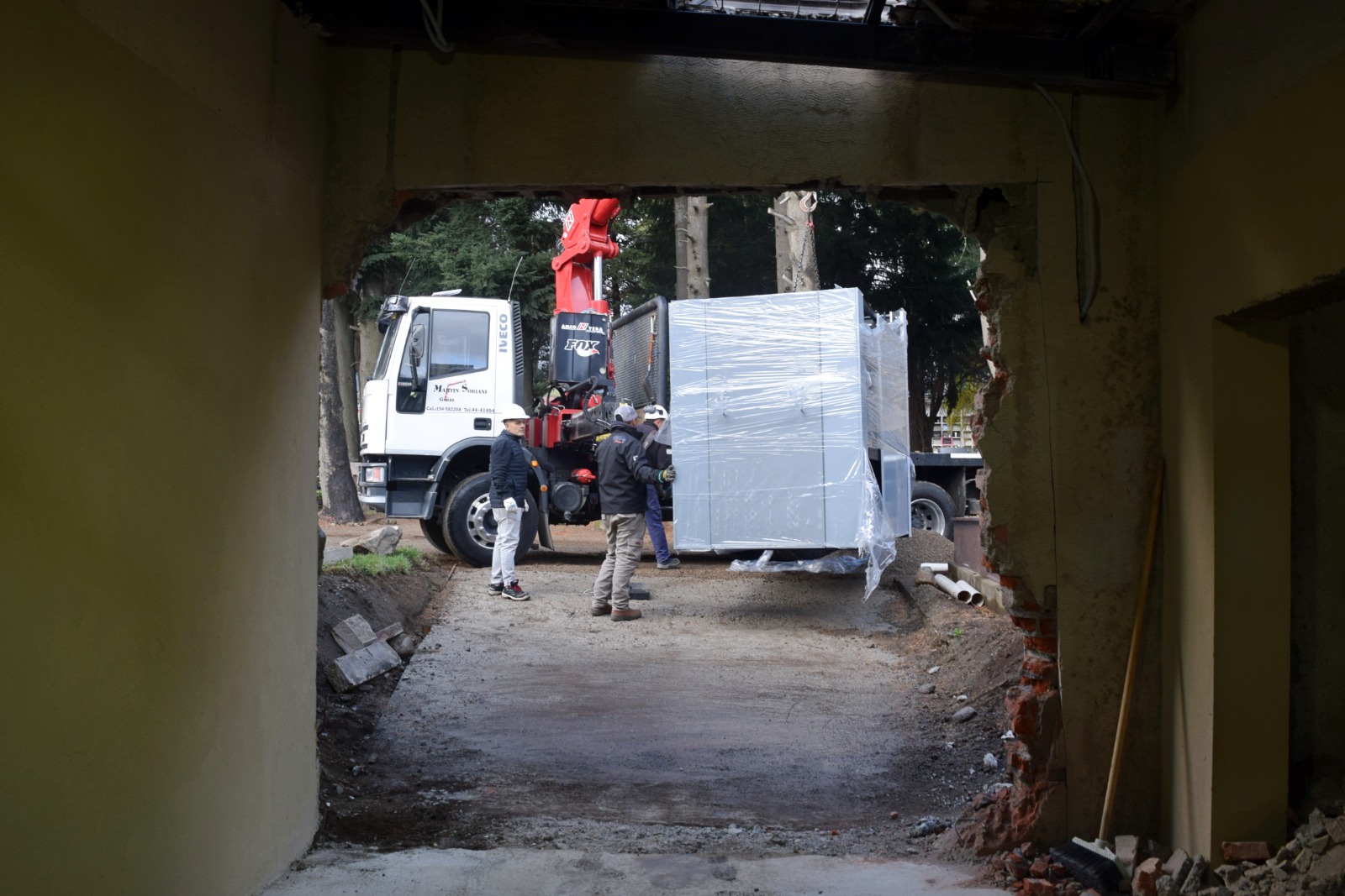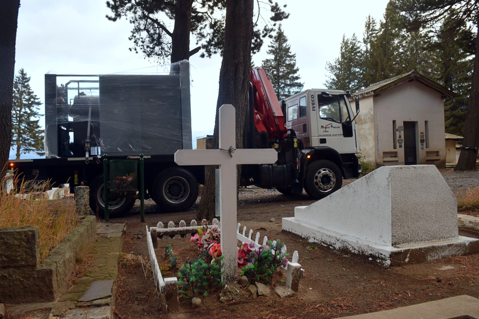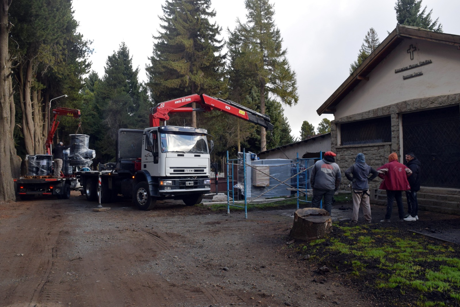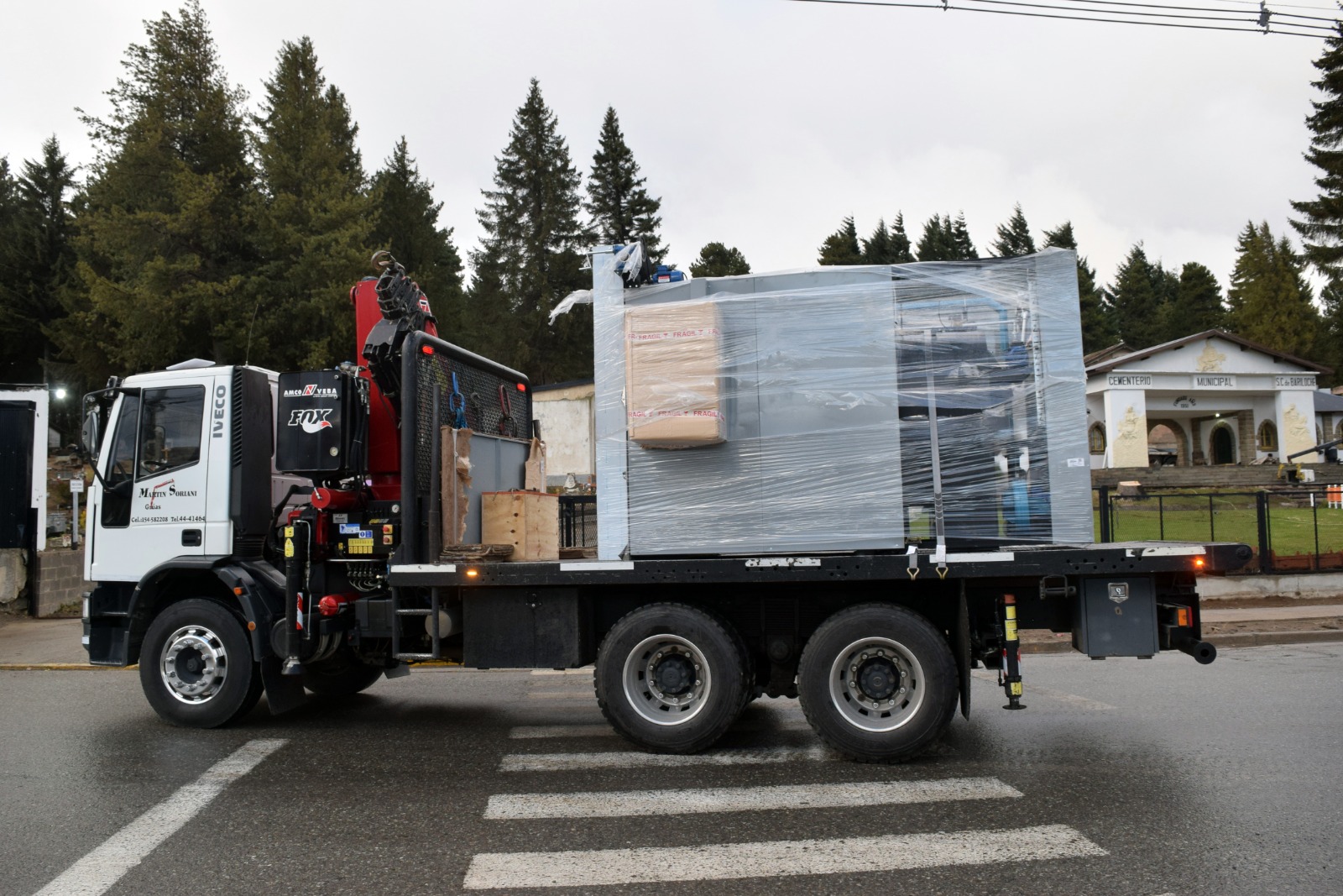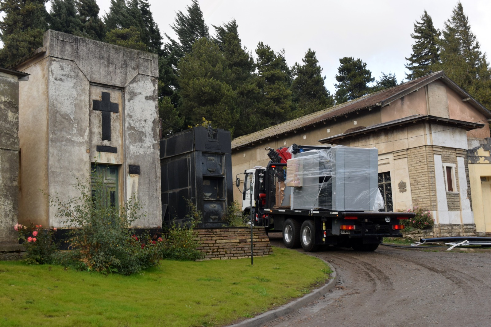 Durante la mañana de este martes, el horno fue finalmente trasladado desde el depósito hasta el Cementerio Municipal, cumpliendo con todas las medidas de seguridad y circulación reglamentaria. Mediante un trabajo coordinado y minucioso, fue descargado con grúa y ubicado en el sector preparado por el personal municipal para su montaje, en una tarea compleja que se desarrolló sin inconvenientes.