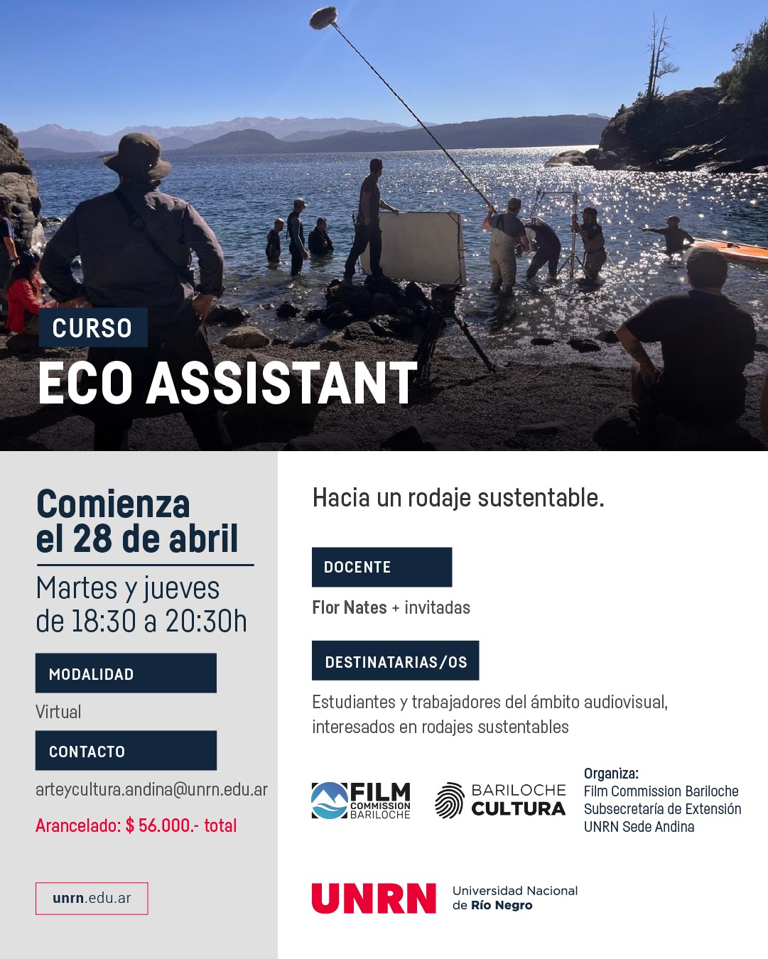 La Subsecretaría de Cultura del Municipio de San Carlos de Bariloche acompaña la segunda edición del curso “Eco Assistant: hacia un rodaje sustentable”, una propuesta de formación orientada a profesionales y estudiantes del ámbito audiovisual interesados en incorporar prácticas responsables en sus producciones.