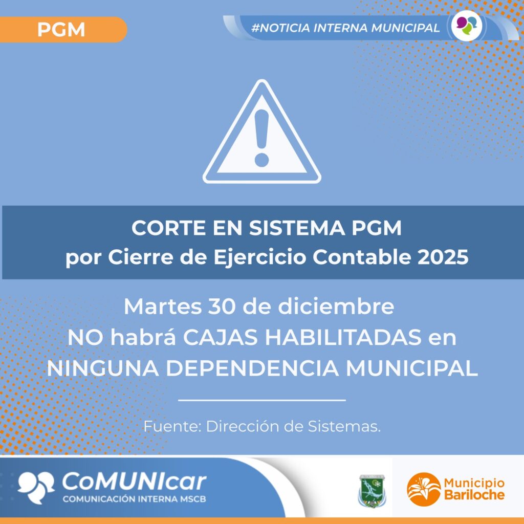 Mañana, martes 30 de diciembre, NO habrá atención en cajas municipales por cierre de ejercicio contable 2025