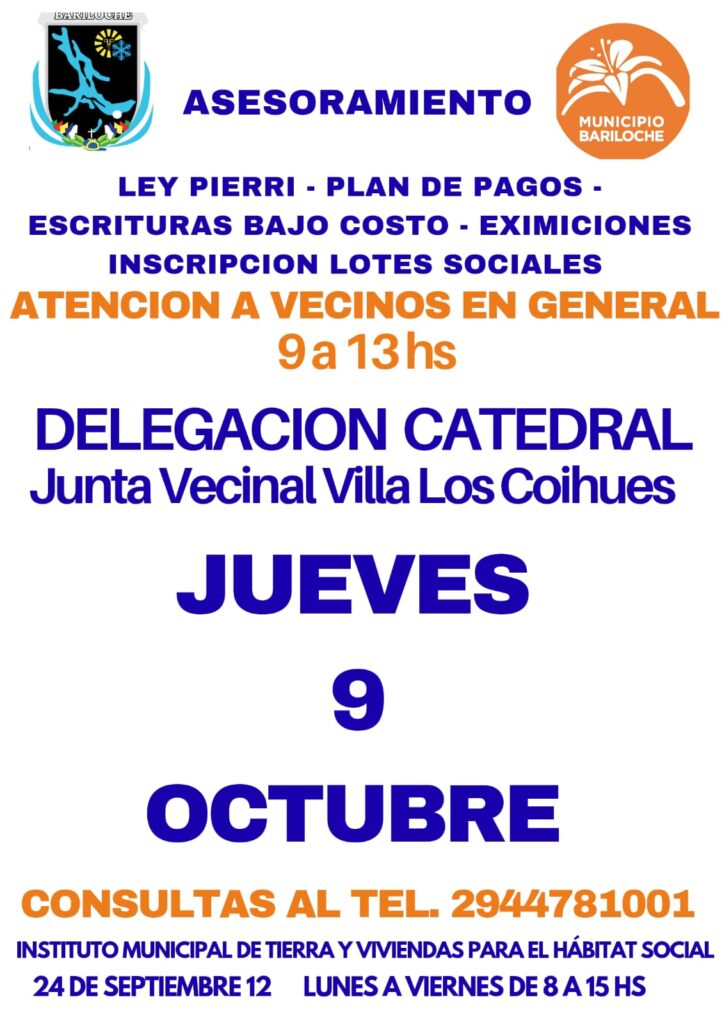 Asesoramiento Integral en Delegaciones Municipales (IMTVyHS) de Bariloche lanza cronograma de