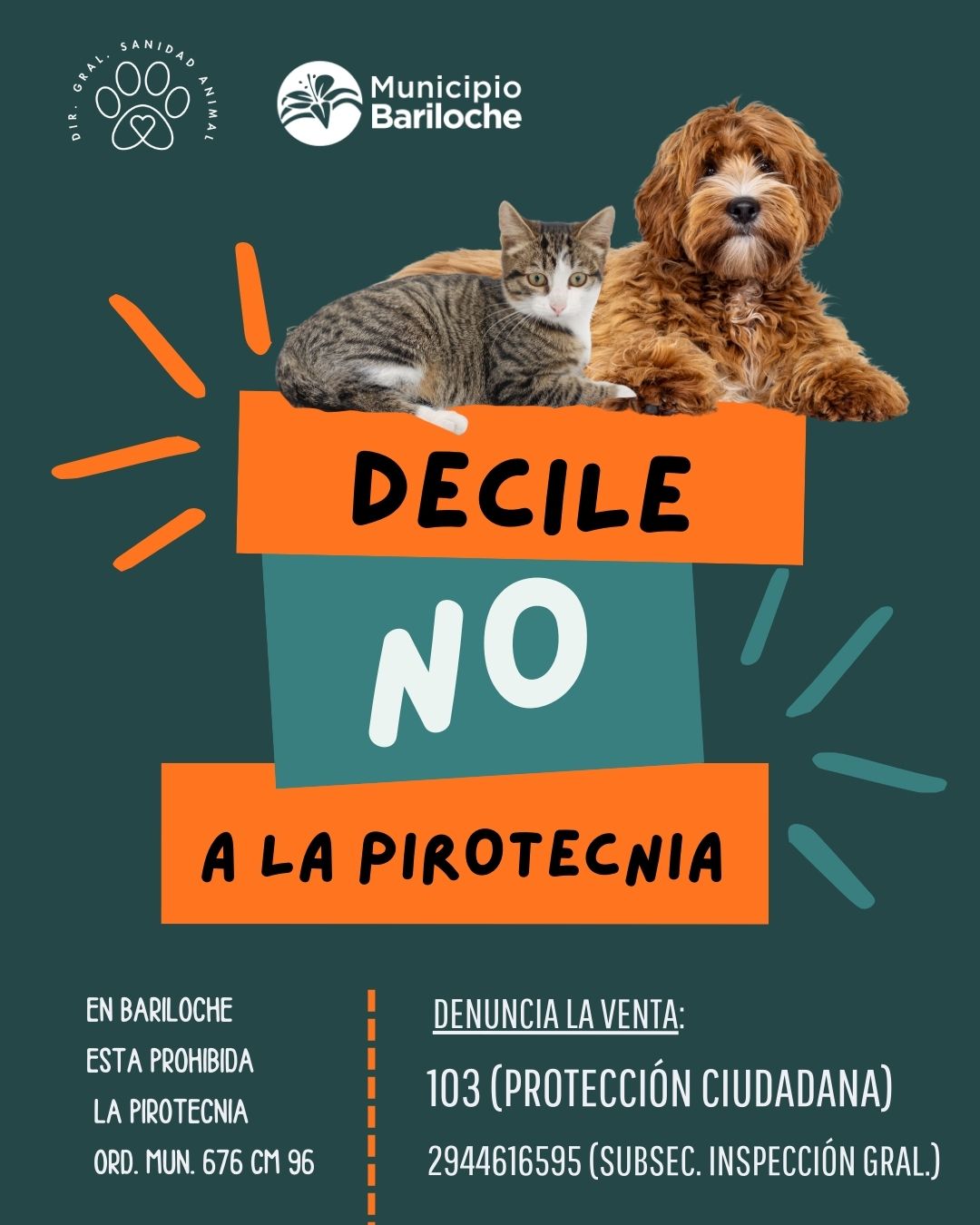 ¡Cada vecino es un protector animal y un guardián de la calma! Desde la Dirección de Sanidad Animal se pide que seamos parte activa de esta campaña de concientización y cumplimiento. Si ves que alguien está vendiendo pirotecnia, es tu deber proteger a la comunidad. Simplemente recordá los canales de denuncia: