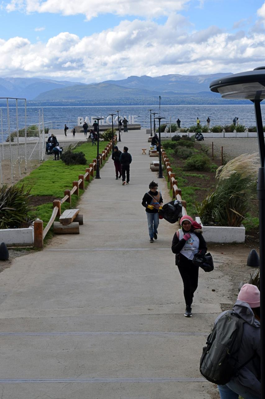 La actividad se desarrolló en el sector de la Costanera, en la Playa Centro precisamente, uno de los espacios más emblemáticos y visitados de la ciudad, donde está ubicado el cartel de Bariloche. En ese lugar, voluntarios, integrantes de la Cooperativa Jóvenes por Bariloche y equipos municipales trabajaron de manera coordinada para recolectar residuos y dejar el lugar en óptimas condiciones.