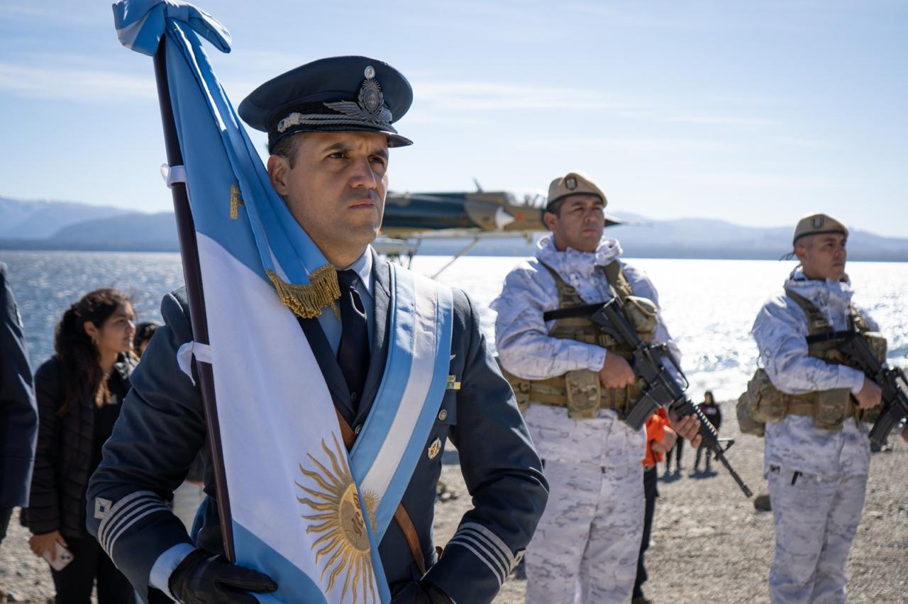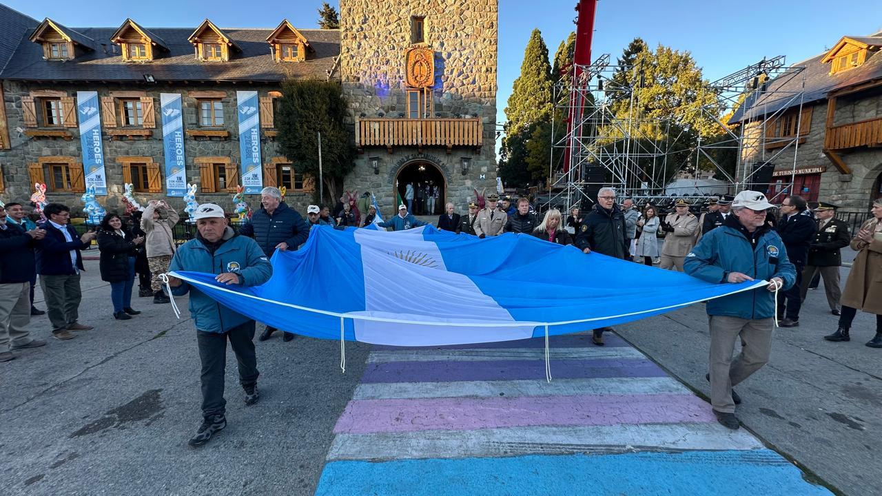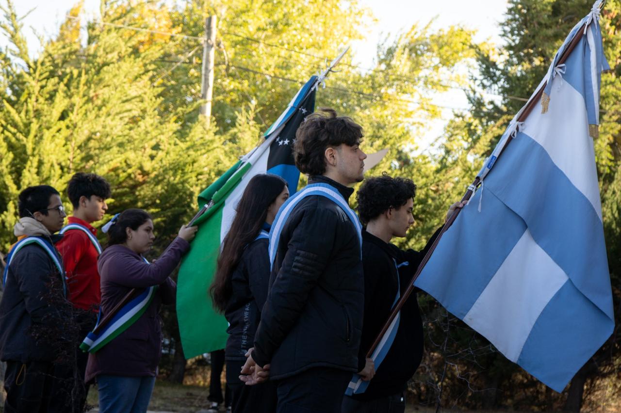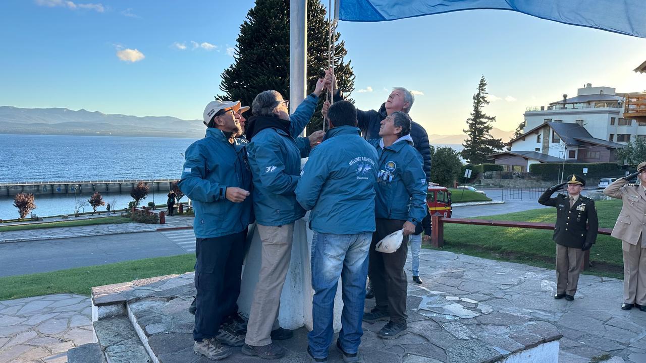 El izamiento fue encabezado por el intendente Walter Cortés, quien, junto a los Veteranos de Malvinas, concejales e integrantes de su equipo de gobierno, además del intendente del Parque Nacional Nahuel Huapi, Dámaso Larraburu, trasladaron respetuosamente la bandera hasta el mástil. También estuvieron presentes secretarios, subsecretarios y delegados municipales, acompañando este momento cargado de simbolismo y profundo respeto.