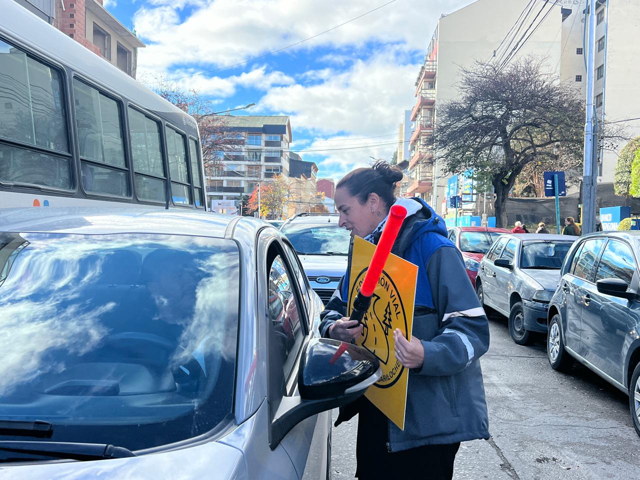 La actividad comenzó en la intersección de Moreno y Quaglia, donde agentes de tránsito realizaron una intervención directa en los semáforos, dialogando con conductores y peatones sin generar inconvenientes en la circulación vehicular.