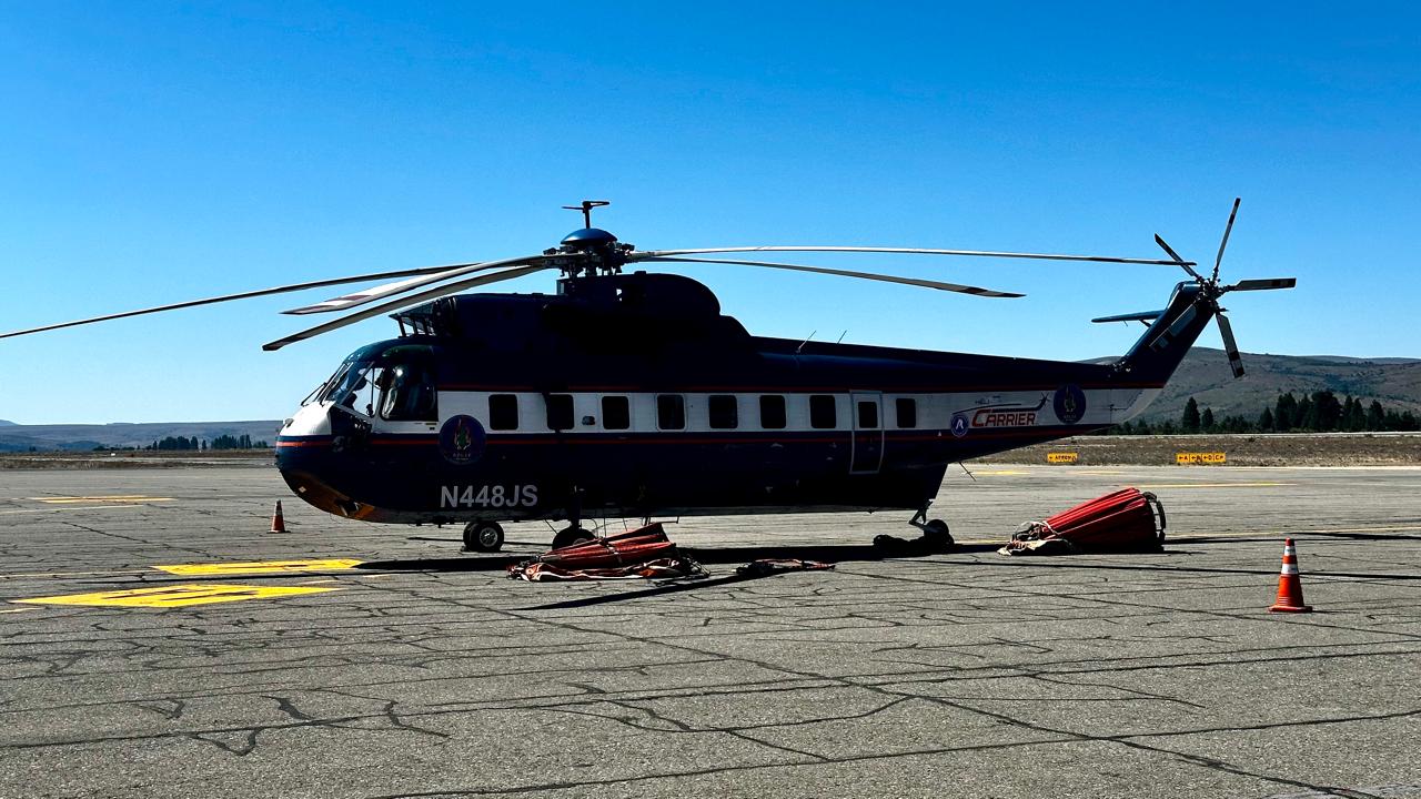 Uno de los puntos centrales de la jornada fue la presentación del helicóptero Sikorsky S-61, una aeronave pesada única en su tipo en el país para la lucha contra incendios forestales. El helicóptero tiene capacidad para transportar entre 17 y 19 personas y puede descargar hasta 4.000 litros de agua mediante sistemas Bambi Bucket, con la posibilidad de ampliar esa capacidad a 4.500 litros a través de un tanque ventral adicional. Su diseño le permite operar con fuertes ráfagas de viento y sostener tareas continuas durante toda la jornada, con respaldo técnico y mecánico permanente, lo que garantiza una respuesta rápida y eficaz ante incendios de gran magnitud.