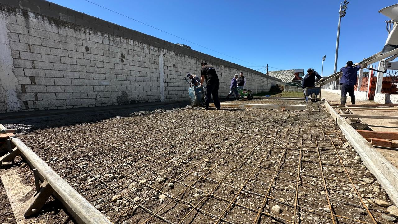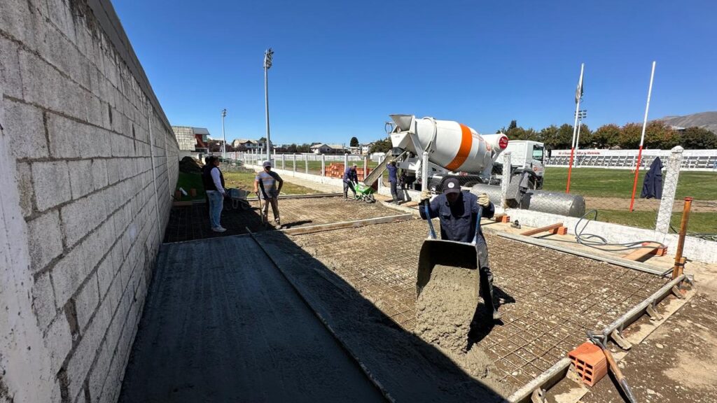 Durante la jornada de este martes, personal de la Secretaría de Deportes de la Municipalidad de San Carlos de Bariloche realizó tareas de hormigonado en el Estadio Municipal, avanzando en la construcción de un espacio destinado a la práctica de artes marciales.