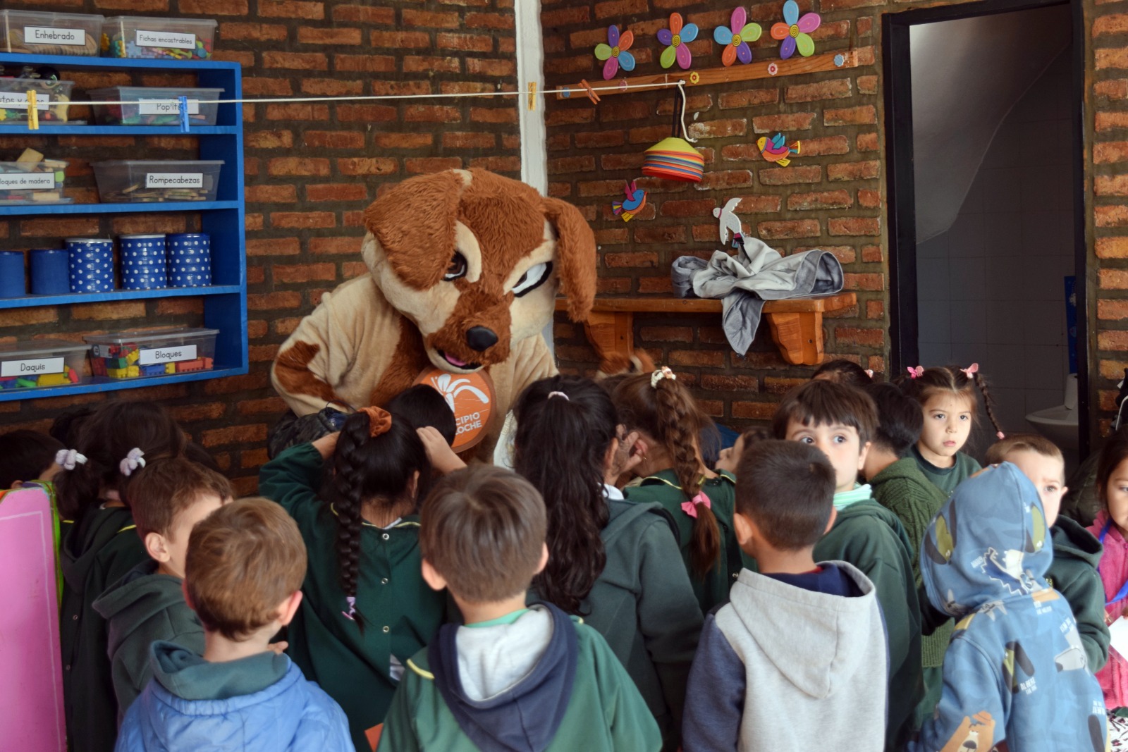 La actividad incluyó dinámicas lúdicas, juegos participativos y contenidos adaptados a las edades de las niñas y los niños, quienes se mostraron atentos y entusiasmados durante toda la jornada, incorporando conceptos clave sobre el cuidado, el respeto y el compromiso hacia sus animales. Uno de los momentos más destacados fue la visita de Rocky, que compartió un espacio de baile y juego con los chicos y chicas, fortaleciendo el mensaje desde lo afectivo.