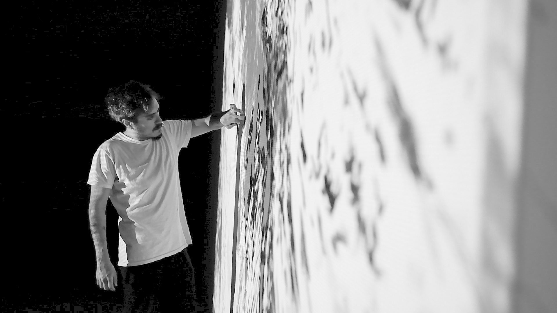 ​​A partir de la observación del viento, el artista registra los gestos del aire sobre el agua para traducirlos en trazos generados en vivo. Estos trazos digitales y animados se proyectan sobre las telas de la instalación, expandiendo la dimensión sensible de la obra entre la arquitectura, el paisaje y la atmósfera.