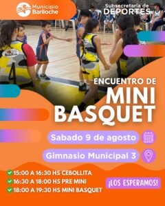 Este sábado 9 de agosto, el Gimnasio Municipal N°3 “Alberto G. Icare” (Santiago de Chile y Bailey Willis) será el escenario de una jornada repleta de deporte, diversión y compañerismo con una nueva edición del Encuentro de Mini Básquet, organizada por la Subsecretaría de Deportes.
