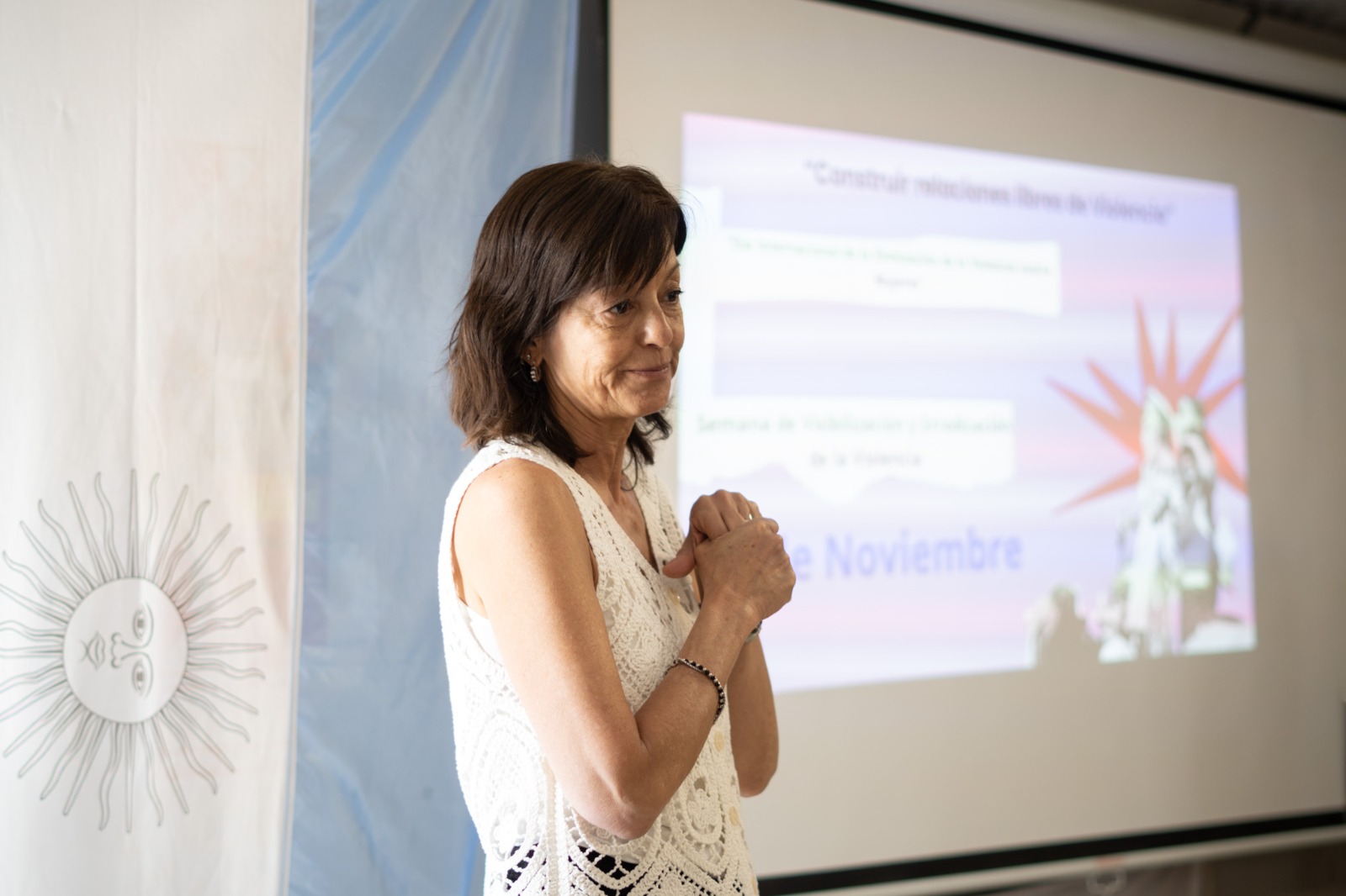 Además, se contó con la participación de la psicóloga Guillermina González y de integrantes de la Comisaría de la Familia, quienes brindaron charlas informativas y de sensibilización, aportando una mirada profesional sobre la intervención y el acompañamiento en situaciones de violencia. En este marco disertaron la oficial inspectora y psicóloga Sofía Sergiani, la cabo primero Renata Olmos y la cabo primero Fátima Tapia, fortaleciendo el abordaje integral y el vínculo entre las instituciones y la comunidad.