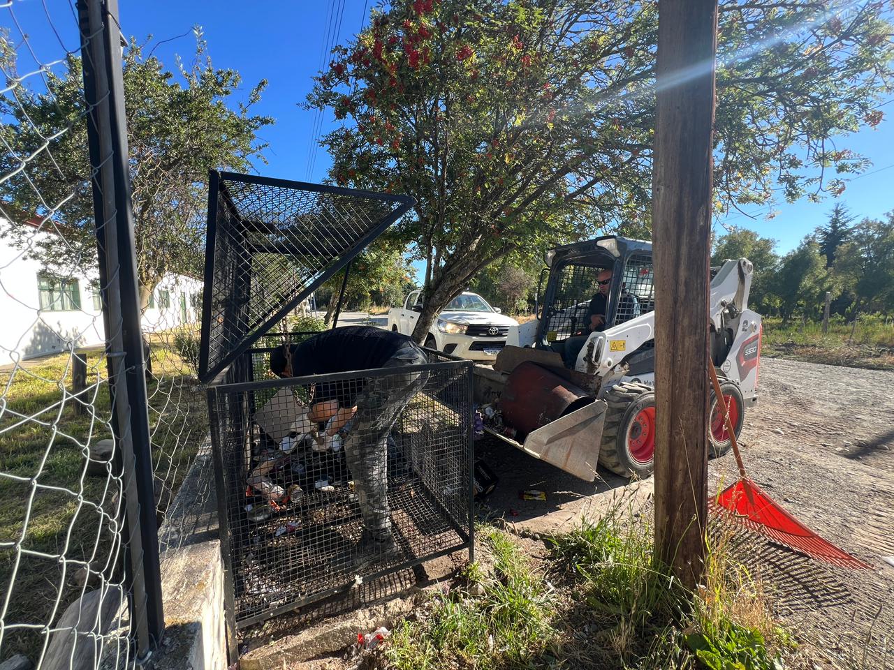 En el sector de la rotonda del kilómetro 8 de avenida Pioneros, frente a la Escuela Primaria N° 321 y la ESRN N° 123, se desarrollaron tareas integrales de limpieza a partir de la gran cantidad de basura acumulada en los tachos ubicados fuera de las instituciones. La intervención respondió a una situación sostenida en el tiempo, generada tanto por vecinos como por turistas y, especialmente, por residuos provenientes de actividades gastronómicas de la zona.