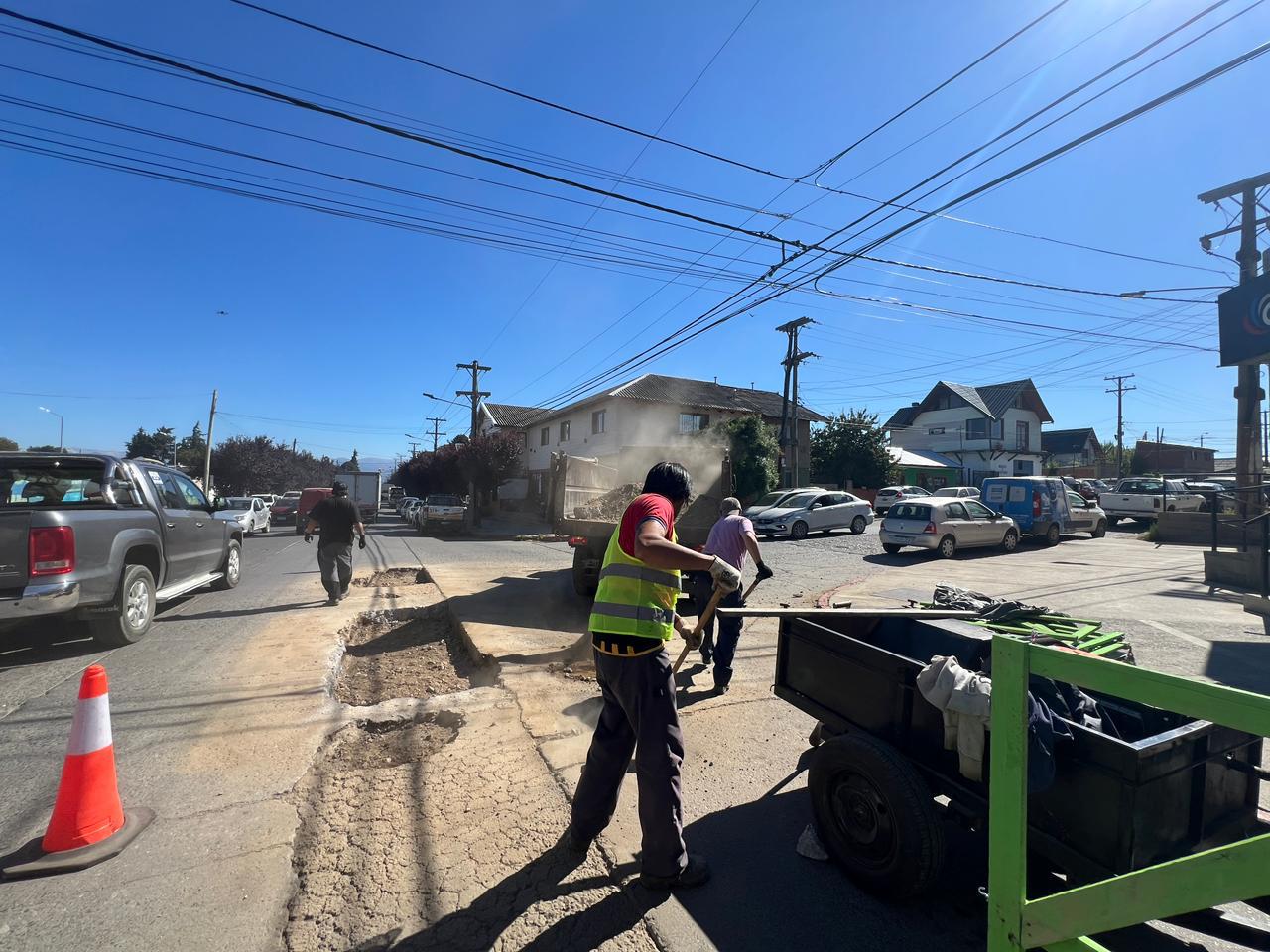 Posteriormente, las cuadrillas se trasladaron a la zona de Onelli y Sobral, donde se realizó otro bacheo de aproximadamente 1,50 metros, también vinculado a trabajos previos de la empresa. En ambos casos, el Municipio aportó el hormigón, el personal y la logística necesaria para concretar las tareas.