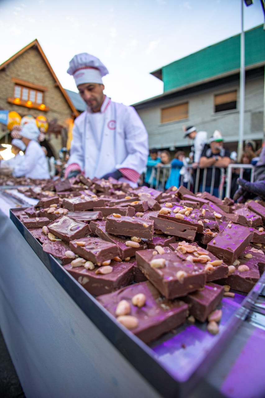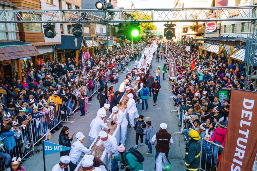 Entre los momentos más esperados se encuentra la tradicional elaboración de la Barra de Chocolate más larga, una verdadera obra colectiva realizada por los maestros chocolateros de Bariloche. Este espectáculo gastronómico convoca a miles de personas y en ediciones recientes superó los 200 metros de chocolate artesanal, consolidándose como uno de los grandes íconos de la celebración.
