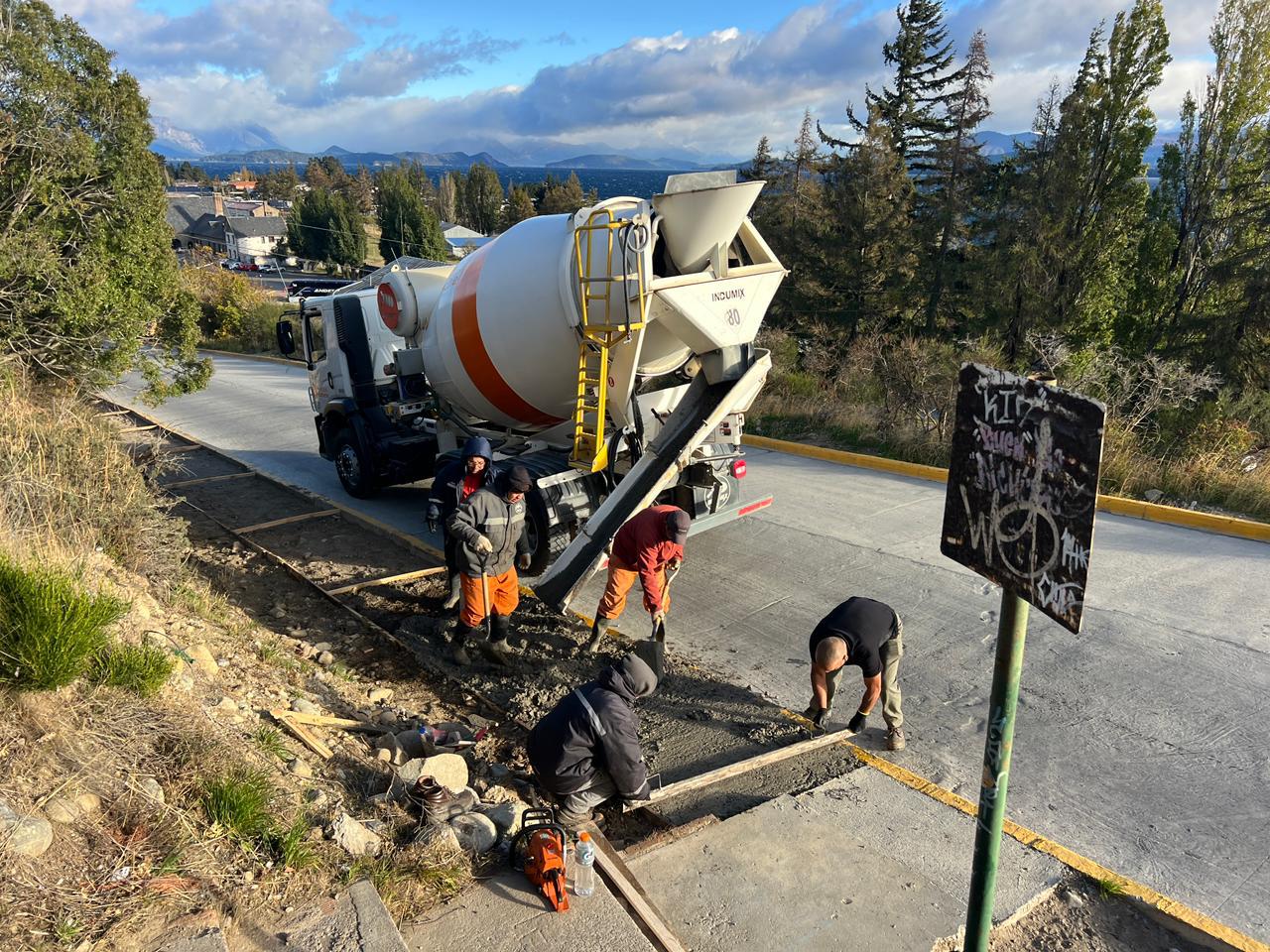 Para esta etapa se utilizaron dos camiones mixer, que aportaron un total de 14 metros cúbicos de material, permitiendo continuar con una obra que no solo mejora la circulación peatonal, sino que también aporta mayor seguridad y ordenamiento en un sector que durante años careció de infraestructura adecuada.