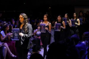 En una de las pasadas, las jóvenes se sumaron a la campaña de Missing Children Argentina, luciendo imágenes de menores buscados en todo el país, en un gesto que buscó visibilizar y sensibilizar sobre esta problemática.