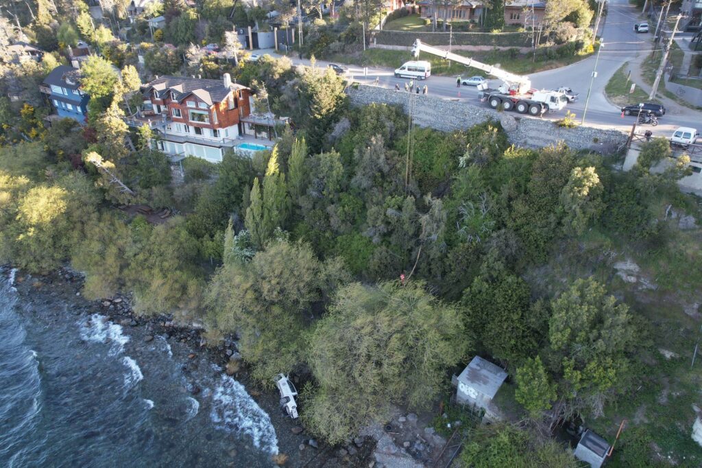 La Municipalidad de San Carlos de Bariloche informa que, a partir de un siniestro vial ocurrido en la madrugada del sábado, en el cruce de Av. Bustillo y Furman, se realizó hoy el operativo de remoción del vehículo involucrado, que había caído hacia la zona del lago Nahuel Huapi. La intervención se organizó tras recibir reclamos por pérdidas de aceite y combustible del rodado, con el fin de prevenir riesgos y resguardar el entorno.