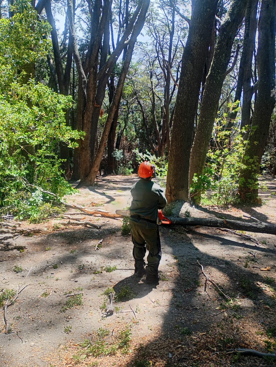 Asimismo, el Parque Municipal Llao Llao desplegó agentes en distintos sectores del área natural donde se registraron caídas de árboles y ramas, especialmente en la zona denominada Puntilla de Tacul, donde se trabajó para garantizar el acceso seguro a los visitantes.