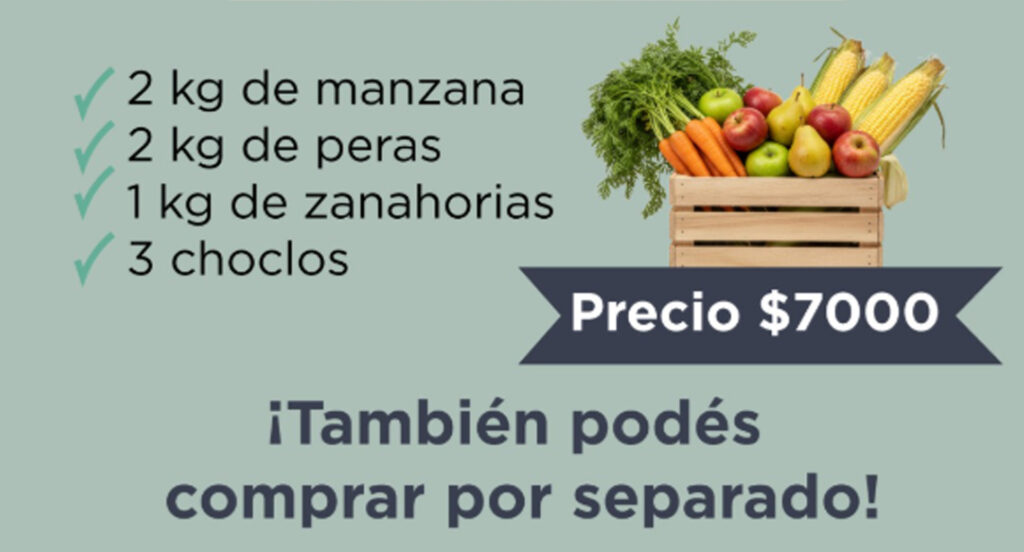 Cada bolsón tiene un valor de $7000 e incluye 2 kilos de manzana, 2 kilos de peras, 1 kilo de zanahorias y 3 choclos. Además, quienes lo deseen también podrán adquirir los productos por separado.