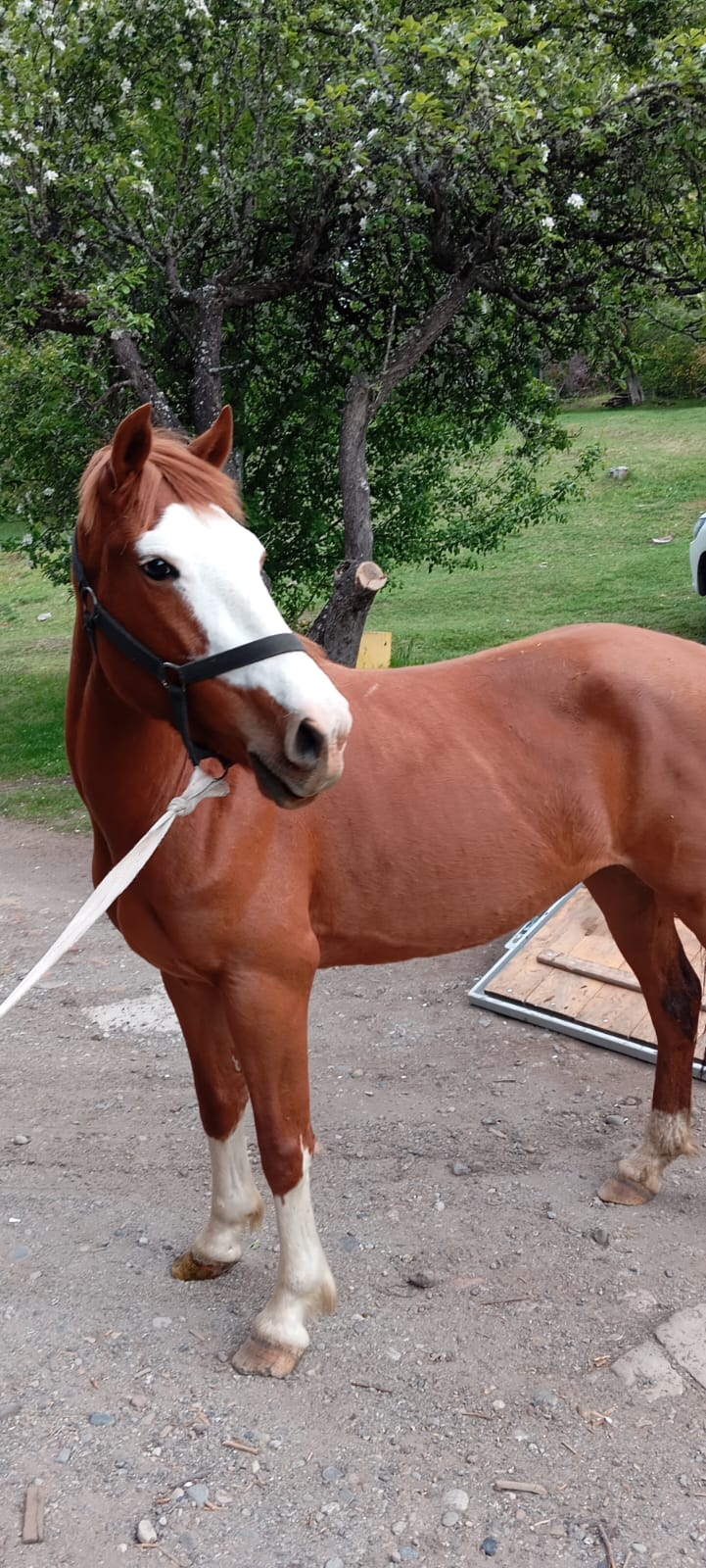 Se trató de una yegua alazán, mala cara, con cuatro patas blancas, coluda y clínuda.